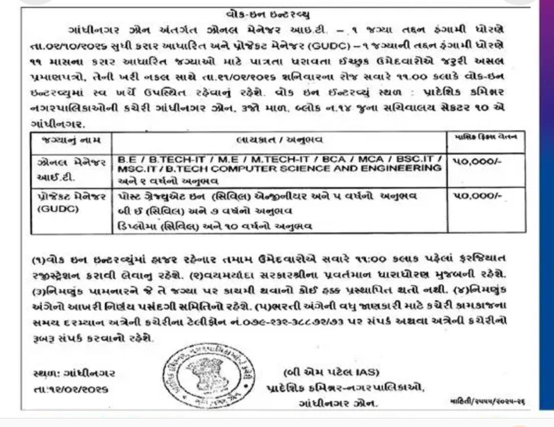 per the official notification for the Gandhinagar Zone Walk-in Interview, there
